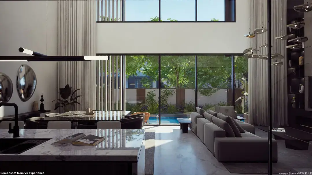 The Watercrest is Ellington Properties' latest off-plan development, comprising luxury villas and townhouses in Dubai. To assist in early sales, Virtuelle created an immersive virtual reality experience that allowed prospective buyers and sales advisors to explore the full masterplan, including exterior designs, interior layouts, and communal areas. This real-time VR experience, built using Unreal Engine 5, featured lifelike interactive elements such as moving water, wind, birds, and spatial audio.