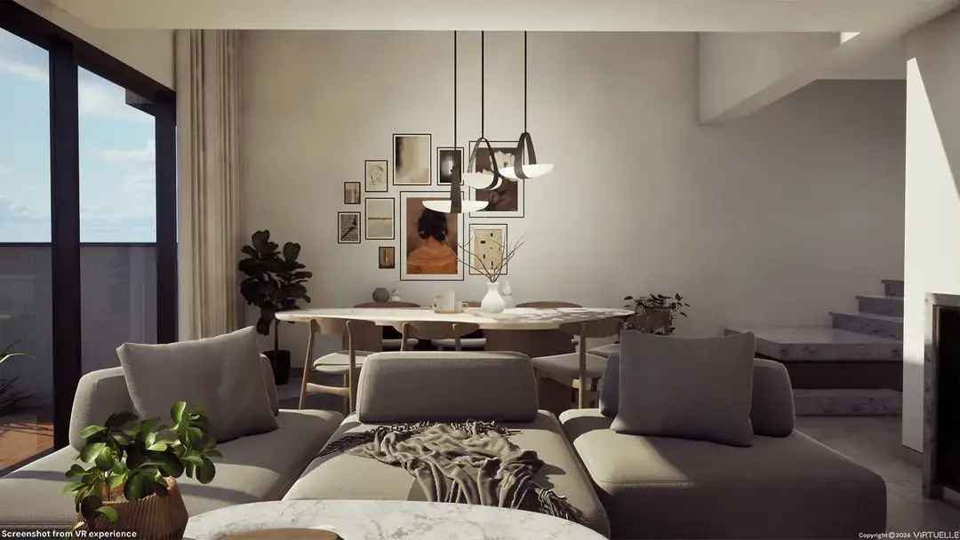 One of the key innovations was the integration of real-time lighting in a VR experience with a sun slider, allowing users to view the property at different times of day for the exact position of the sun compared to the plot of land. The experience also included engaging gamification elements like a pool swan ride, making the exploration enjoyable while maintaining focus on vital details like measurements, textures, and ceiling heights.